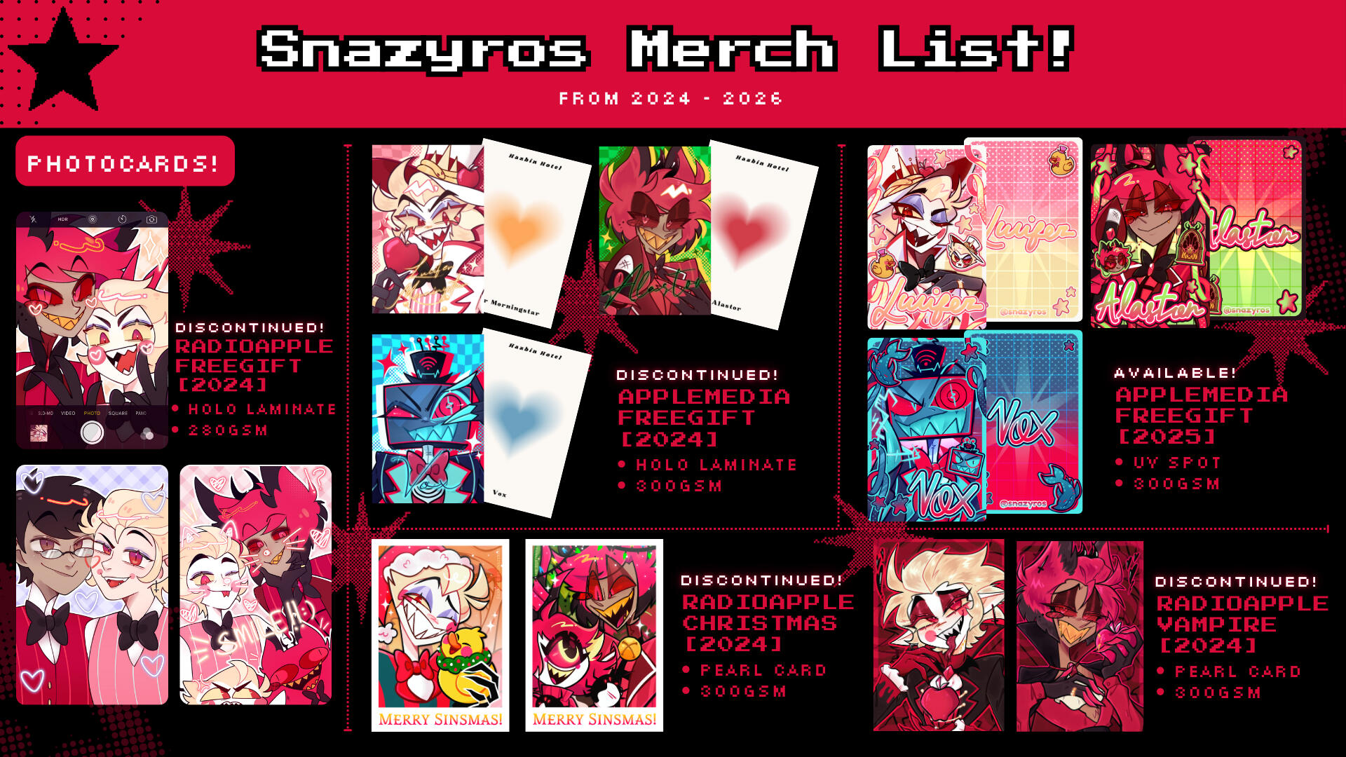 Full Catalogue Summary of (2024 to 2026, more to come!!)